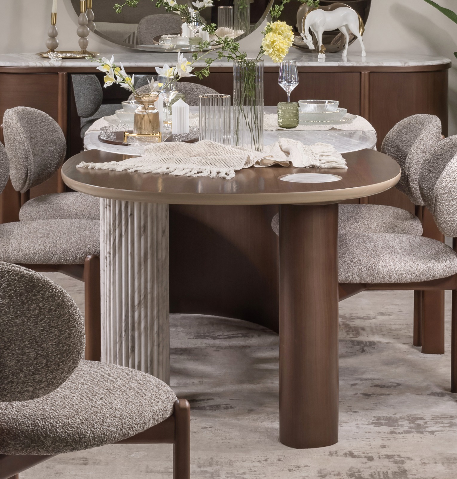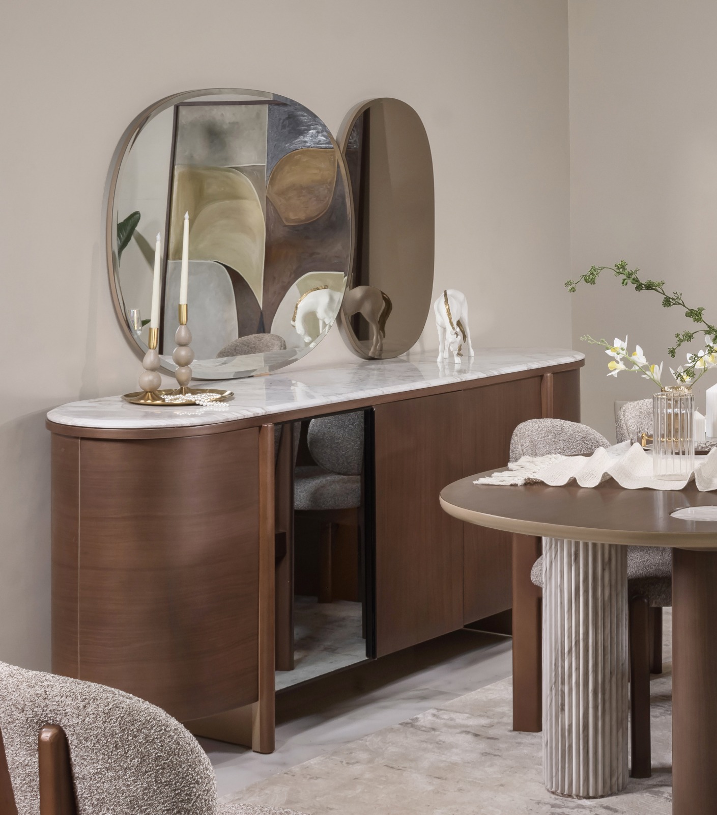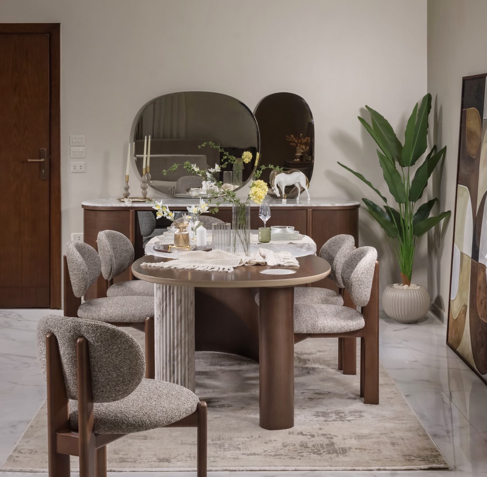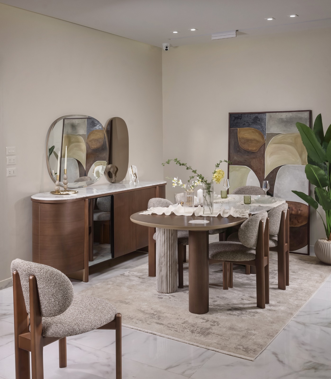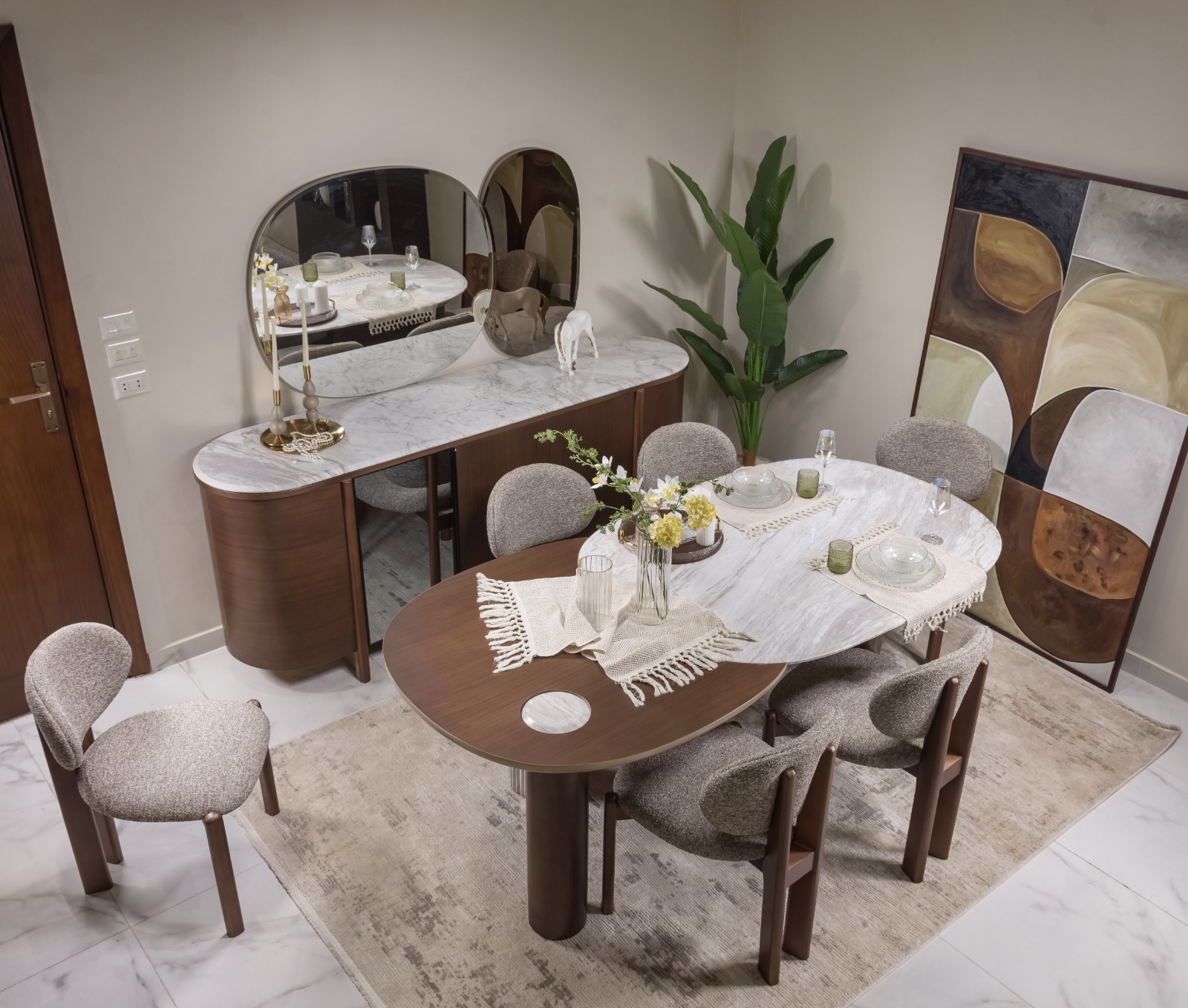 سفرة إيفوري المطعمة بالرخام تجسد فخامة راقية بتفاصيل متقنة تجمع بين نعومة التصميم وقوة الحضور.