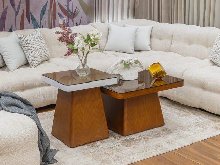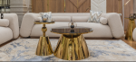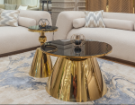 إختاري هذه الطاولات الجانبية وأضفي لمسة أنيقة إلى إعدادات منزلكِ. تتميز بنمط  مخروطي الشكل مذهب اللون مع سطح زجاجي رائع وأنيق .